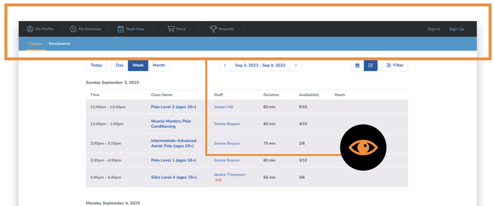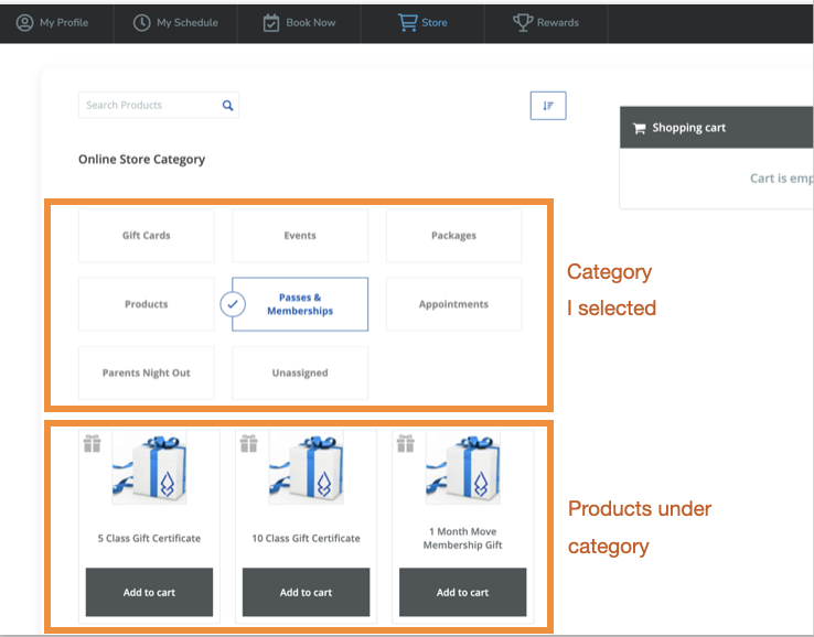 My first visit was to purchase a 3-class pass listed on the website. After locating the store page, I was confused about where to look for the pass. It took a minute to understand that I was in the right category and had to scroll down for the products.