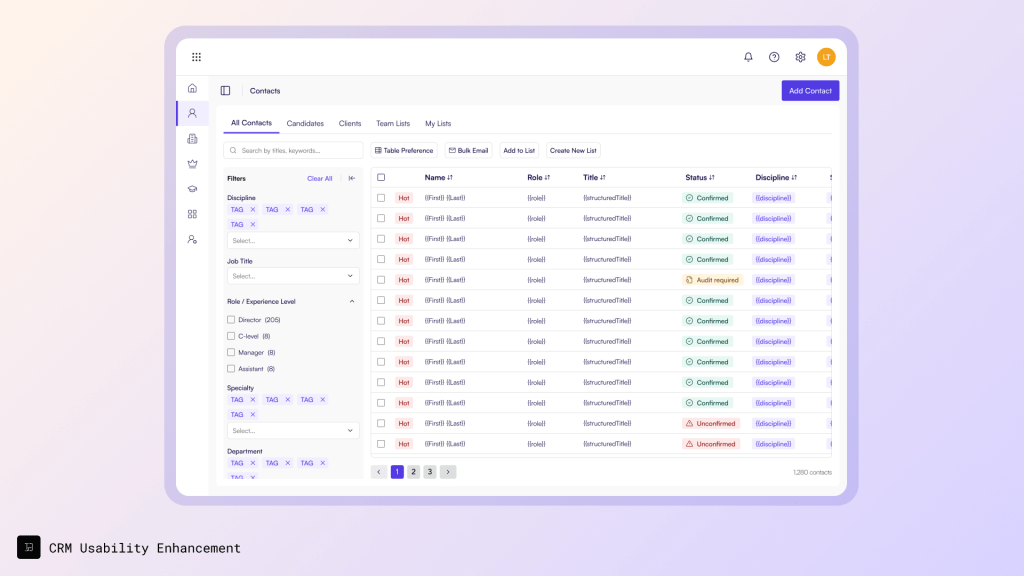 I led the end-to-end UX strategy and design for a large-scale CRM usability enhancement initiative, overseeing a team of three designers to redefine core workflows such as contact management, list navigation, and accessibility. Through research-driven design and systematic process alignment, I bridged gaps between design and development, established the foundation of a scalable design system, and delivered measurable improvements.