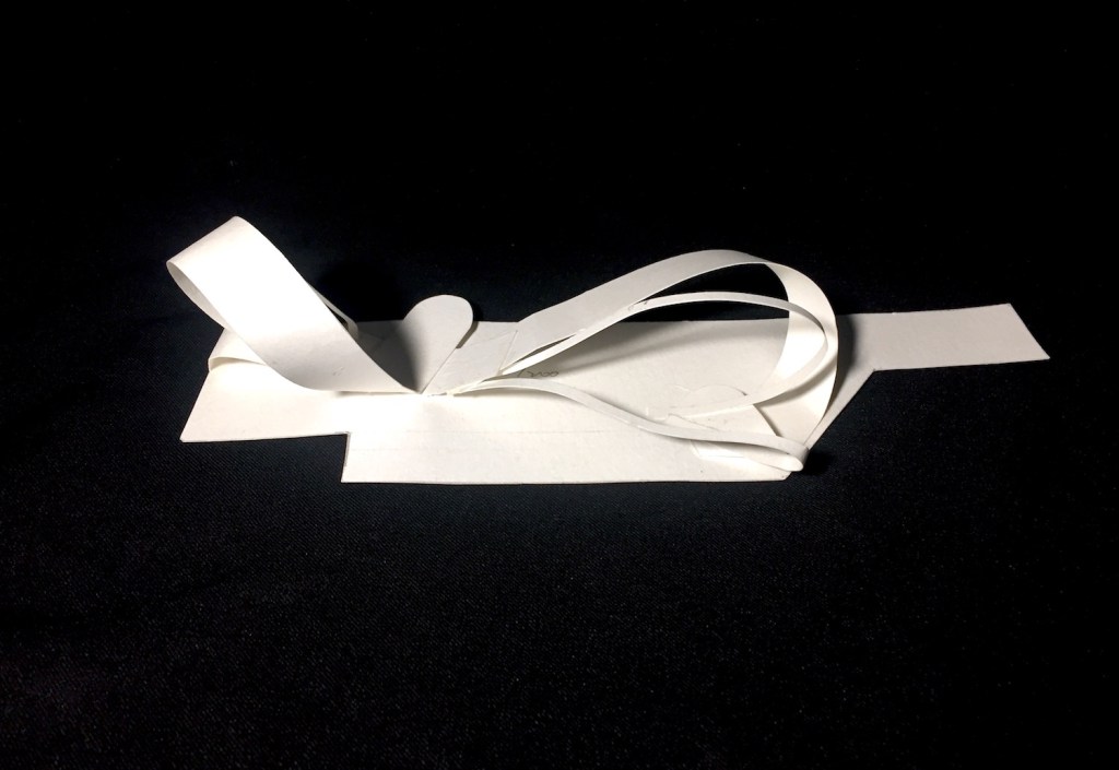 The concept started as a long and flexible slip of paper. I used its curving beauty to get fitting in the narrow site and create several possible spaces to use flexibly.